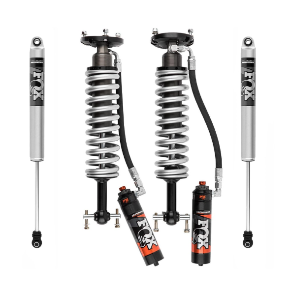 - FOX 2.5 delanteros: cuerpo de aluminio, reservorio externo y ajuste de altura (0-2”).
